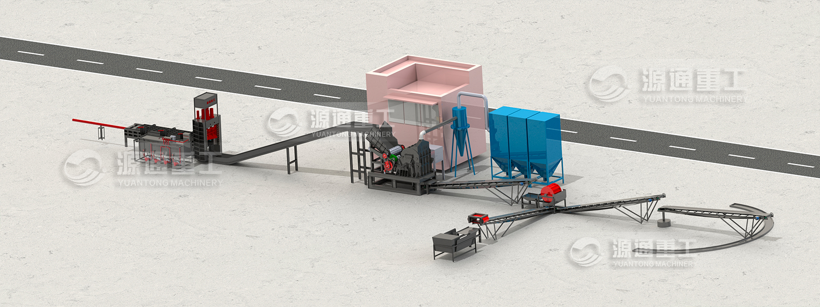 針對物料體積較大,體量較多,需要對物料破碎篩分。我們采用了新型多刀液壓剪斷機(jī)與廢鋼破碎機(jī)生產(chǎn)線的組合模式先將大件物料進(jìn)行剪切,然后將輸送至破碎生產(chǎn)線進(jìn)行破碎分選,可有效的提高產(chǎn)量,增大物料密度。