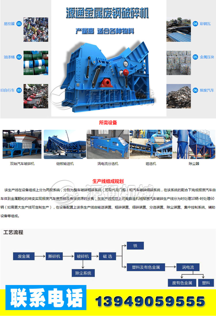 當(dāng)今社會,生活節(jié)奏越來越快,在快速消費品充斥的今天,每天都有很多生活垃圾被廢棄。比如廢舊易拉罐,廢薄鐵皮,廢鐵渣,露露灌,八寶粥罐,和其正罐,金屬瓶,易拉罐,可樂罐,飲料罐,啤酒罐,紅牛罐,油漆桶,月餅盒,罐頭盒等,甚至一些被淘汰的自行車,摩托車,小轎車,這些都是一些金屬垃圾。由于金屬制品的腐蝕、損壞和自然淘汰,每年都有大量的廢舊金屬產(chǎn)生。如果隨意棄置這些廢舊金屬,既造成了環(huán)境的污染,又浪費了有限的金屬資源,為此,如何合理利用廢舊金屬使得廢舊金屬粉碎機(jī)應(yīng)運而生。